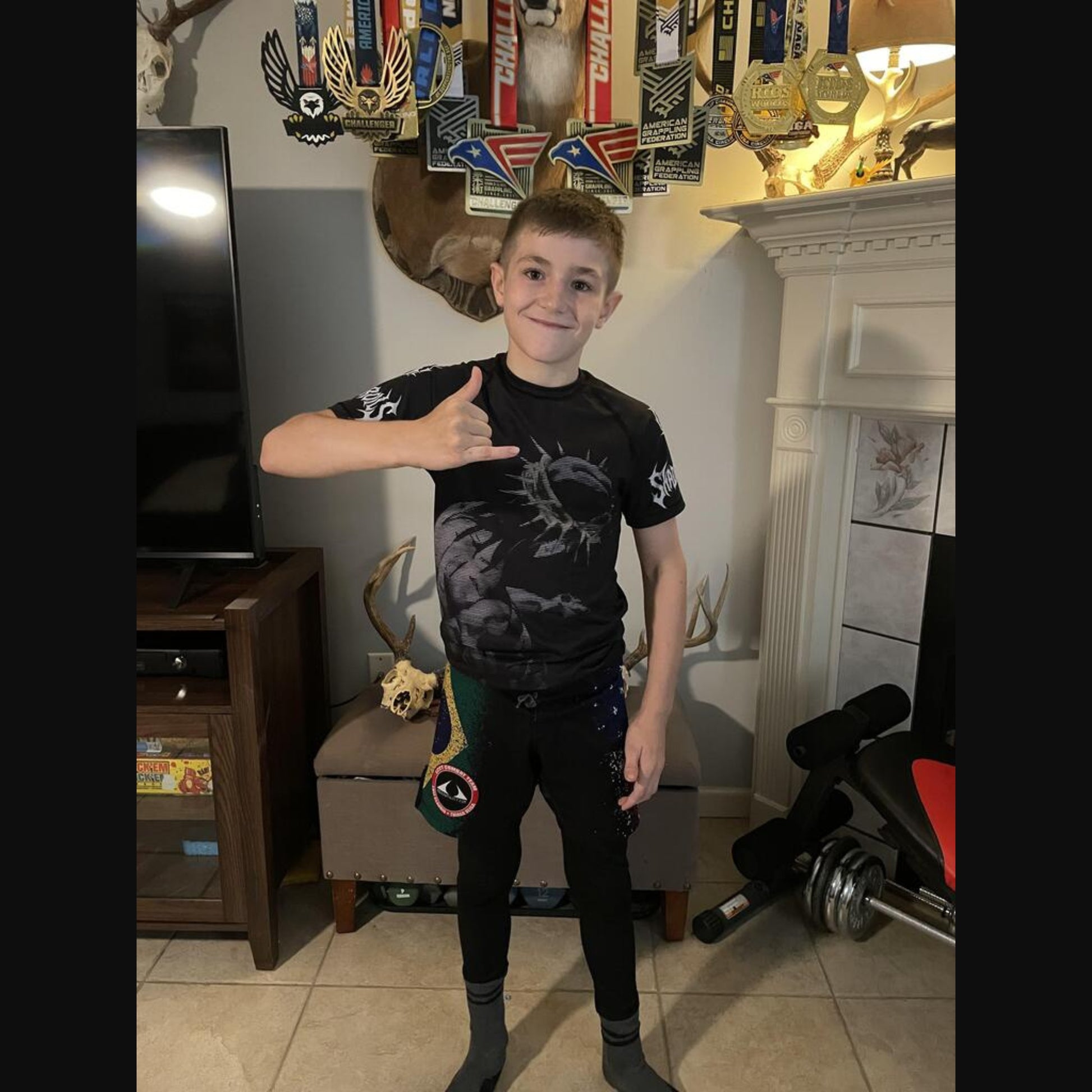 Make a bold impact in and out of the gym with distinctive design and athletic fit. The Crown of Vengeance Rash Guard features striking graphics that symbolize determination and resilience, ensuring you stand out while performing at your best. Whether you choose a full-length sleeve or a short sleeve option, you’ll represent your fighting spirit with every rep, roll, and round.