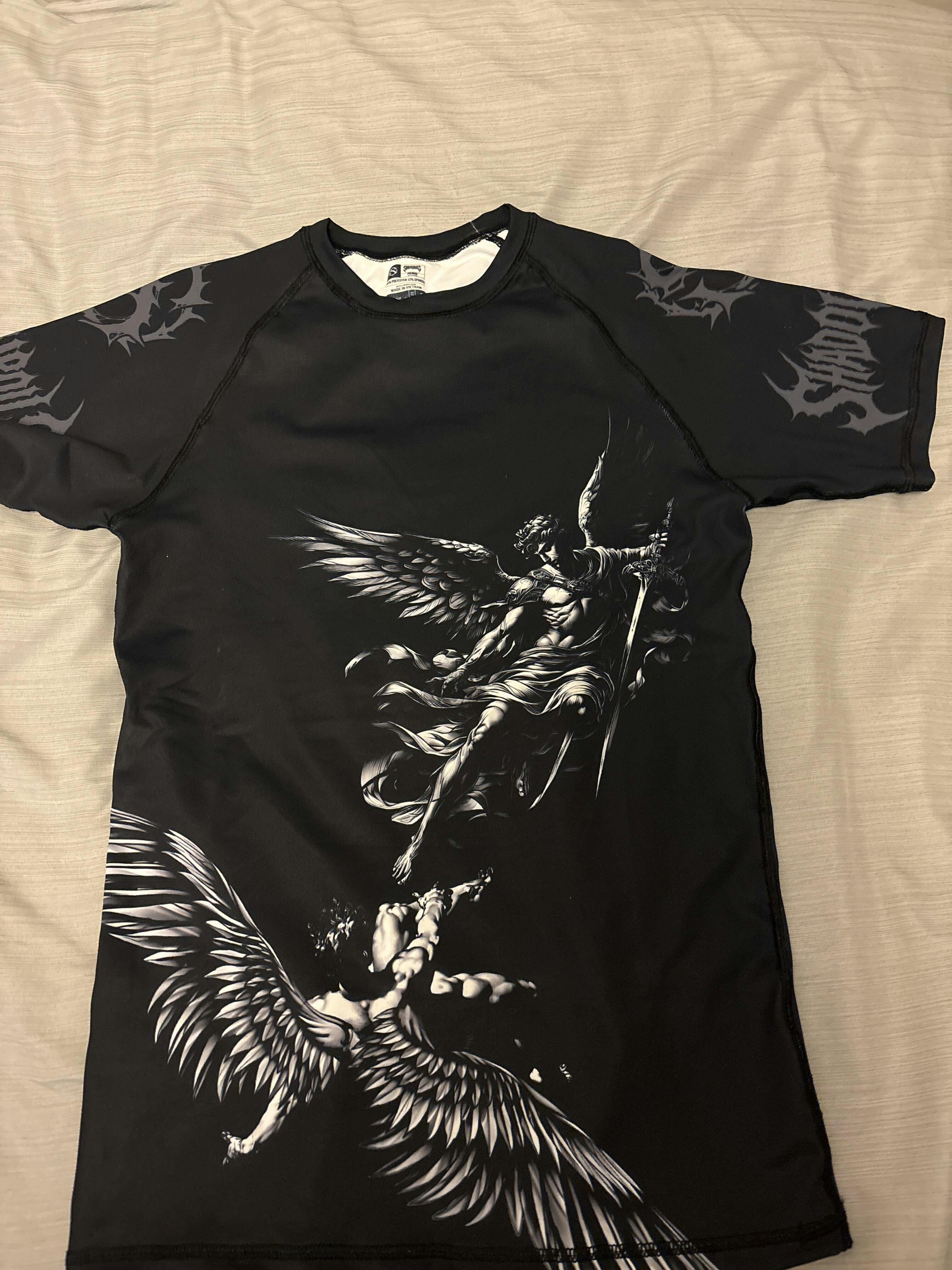 For those who step onto the mats or into the gym with a sense of mission and a commitment to growth, the Faith Over Fear Dark Halo Rash Guard delivers performance, comfort, and a reminder of your inner strength. From grappling exchanges and striking pads to gym circuits and cardio, trust a rash guard that matches your drive and determination, session after session.