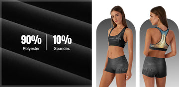 - Moisture-wicking, seamless, and flexible polyester/spandex blend